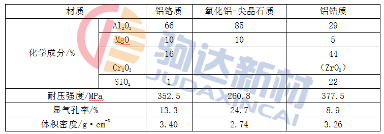 火焰噴補料用的耐火粉料,其品種有鎂砂、鎂白云石砂和鎂鉻砂等,細度為小于0.1mm,其中0.09mm的占60%以上;增塑燒結劑有軟質黏土、膨潤土和硅灰等;助燃劑可選用焦末、煤粉和鋁粉等。火焰噴補料的通用配合比:耐火粉料65%~80%、助燃劑3%~20%、燒結劑等外加物5%~10%。最近,在噴補料中又摻加石灰等造渣材料,使火焰噴補層成為耐火渣層,即爐襯掛渣,保護原襯磚層,其效果顯著,成本低廉,正在推廣。表1-1為火焰噴補料性能。