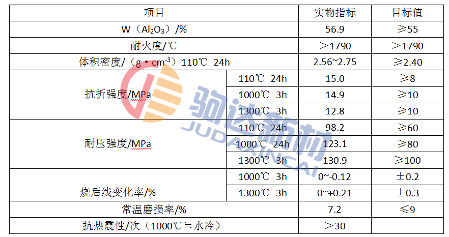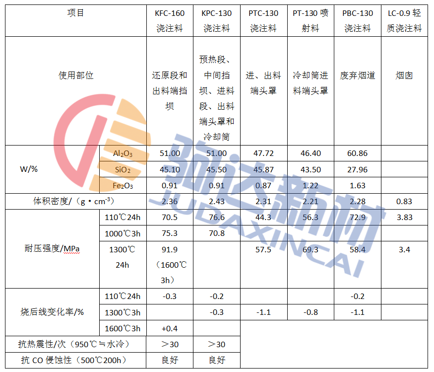 1 直接還原煉鐵回轉窯用澆注料的性能