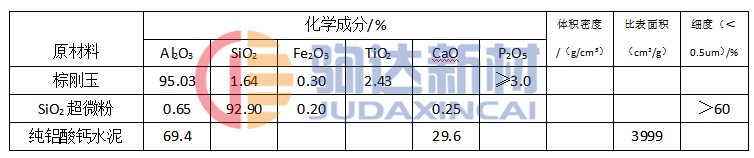 剛玉質澆注料(以下簡稱CA料)的配比如下: