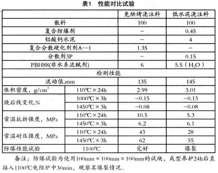 普通低水泥澆注料當含水量較高,劇烈升溫時水分會大量且迅速的排出,而當水分排出通道不暢時,水分不能及時排出,蒸汽壓力激增,就會引起材料爆裂。這種材料存在下述問題:①由于用氧化鋁水泥作硬化劑,引入 Ca0 造成基質低熔點,降低了耐蝕性;②加入干燥助劑金屬 Al粉,金屬 Al 粉的添加對干燥是有效的,但是施工體易產生龜裂,帶來組織劣化的傾向;③磷酸鹽結合材料存在結合劑遷移問題,造成材料表面離子富集,堵塞氣孔通道,容易出現分層爆裂剝落的現象